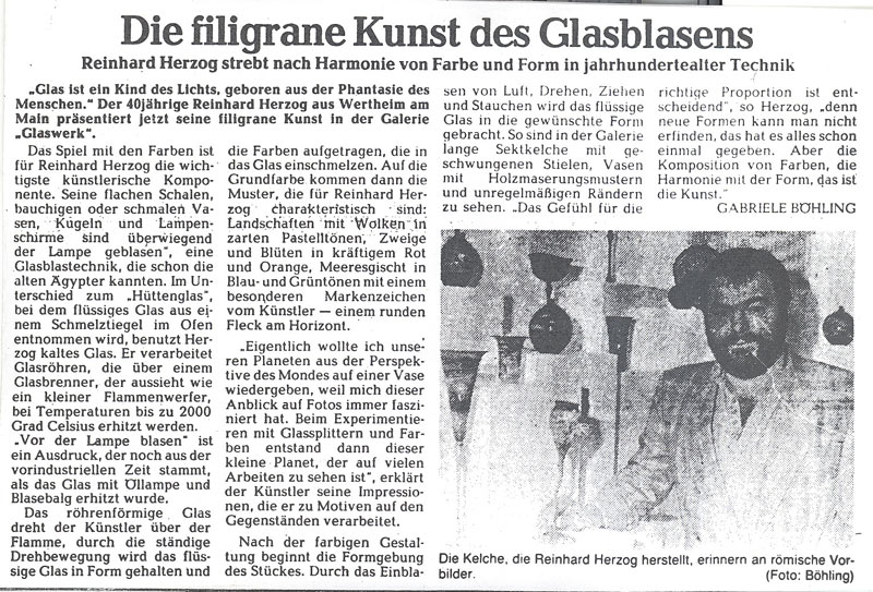 ← Filigrane Kunst des Glasblasens Bericht 1988