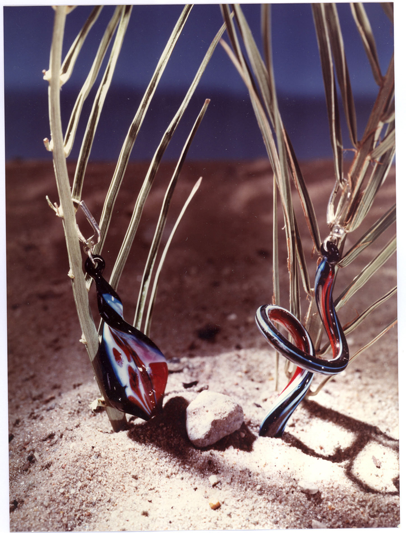 Ohrringe aus Glas von Rainer Schrade aus dem Jahr 1987